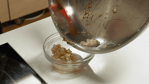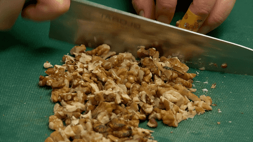 Chop the nuts not too finely, so that there are pieces in the salad that can be chewed.