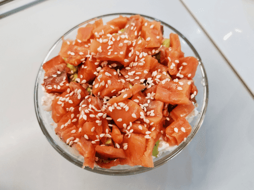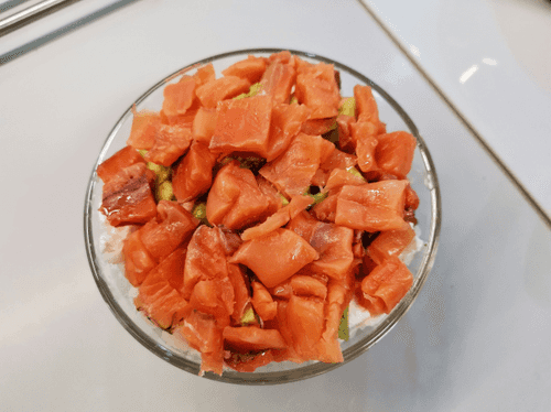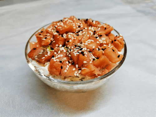 Sushi salad is a harmony of Japanese classics and modern gastronomy. It combines the tenderness of red fish, the creamy texture of cheese, and the freshness of avocado, creating a rich palette of flavors. Rice infused with light notes of sesame adds warmth and richness to the dish. This salad embodies the idea of sushi but in a more convenient format without the need to shape rolls. It can be served as an original treat at a party or enjoyed alone while immersing oneself in a world of delicate flavors. Easy to prepare yet elegant in presentation, it allows one to feel the spirit of Japanese cuisine without complex techniques. Suitable for both a light dinner and festive gatherings, it surprises with its combination of textures and flavor nuances.