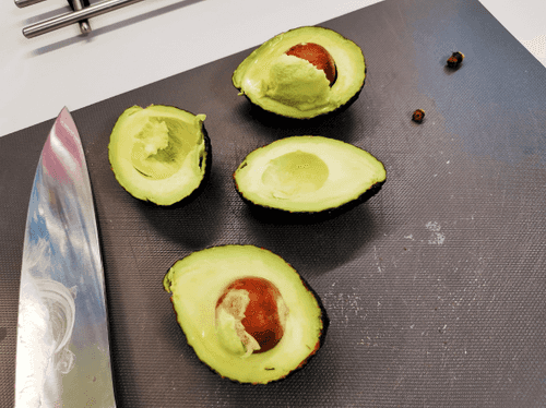 Cut the avocado in half.