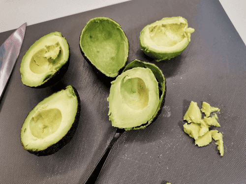 Scoop out the avocado flesh with a tablespoon.