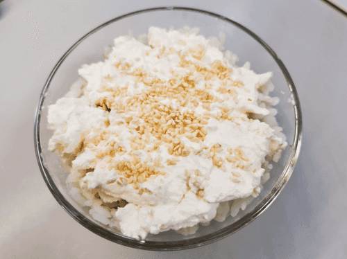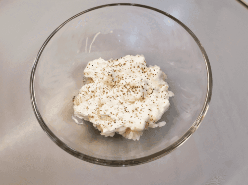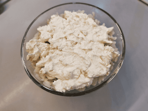 Grease the rice with cottage cheese.