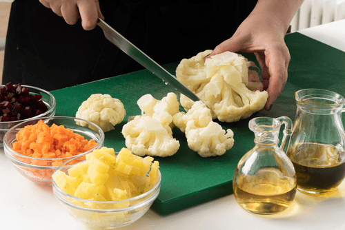Wash and boil the vegetables al dente separately in boiling salted water. Drain the water, cut the vegetables into slices or cubes, and keep them separate, seasoning with oil, salt, and a little vinegar.