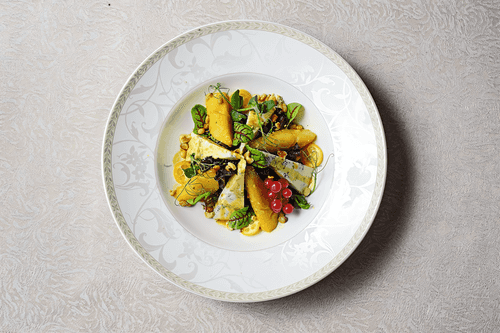 The Panorama restaurant at the hotel of the same name offers European cuisine with an obvious Italian twist, a panoramic view of Tver and the obligatory for a tourist city sprinklings of Russian cuisine with local products. The restaurant is headed by Alexander Meliyev, who once trained his hand with Italian chefs. Salad with stewed pear is a light base and a substantial sauce. The recipe is taken from the book "Geography to Taste with Nika Ganich. Gastronomic Guides.
