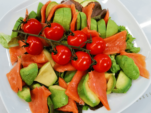 Coho Salmon Salad with Avocado and Pesto Sauce