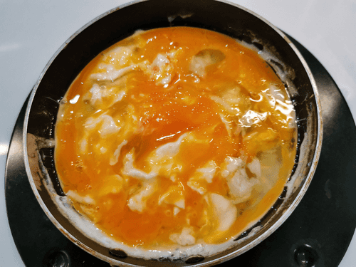Cook for about 1 minute on high heat, stirring constantly, until it reaches a scrambled consistency.