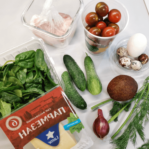 This author's salad with chicken and quail eggs in sauce is an exquisite combination of tender meat, fresh vegetables, and a piquant sauce. Its taste is a harmony of the softness of avocado, the juiciness of cherry tomatoes, the crunchiness of cucumbers, and the refined aroma of spinach and dill. Parmesan adds depth to the dish, while the dressing with grainy mustard and lemon provides a subtle tanginess and richness. Quail eggs add lightness and nobility, while chicken sautéed with paprika enriches the salad with a pleasant smoky note. This salad is perfect as a light lunch or an elegant dish for a dinner party, impressing guests with its sophistication and freshness. The origins of such a dish can be traced back to classic culinary traditions that combine the balance of proteins, greens, and rich sauces for ideal gastronomic pleasure.