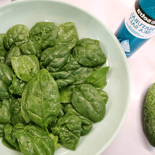 Wash the spinach leaves and place them at the bottom of the plate.