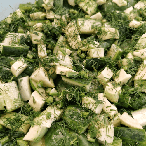 Add dill to the salad.