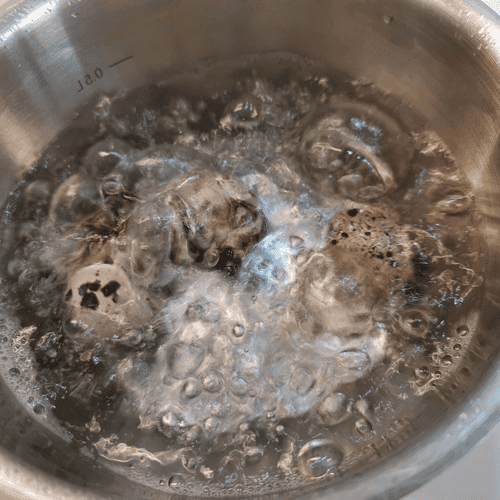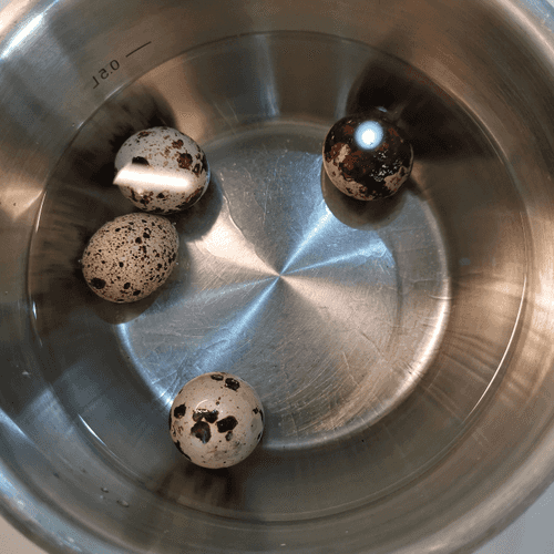 Pour quail eggs with water and put them on high heat.