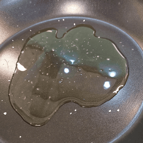 Heat oil in a pan and add a pinch of coarse sea salt.