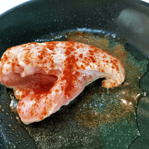 Season with paprika and fry on all sides until cooked (time depends on the thickness of the piece).