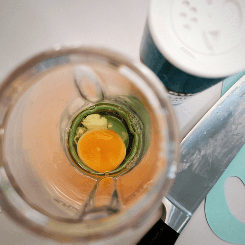 Break an egg into the blender and add salt.