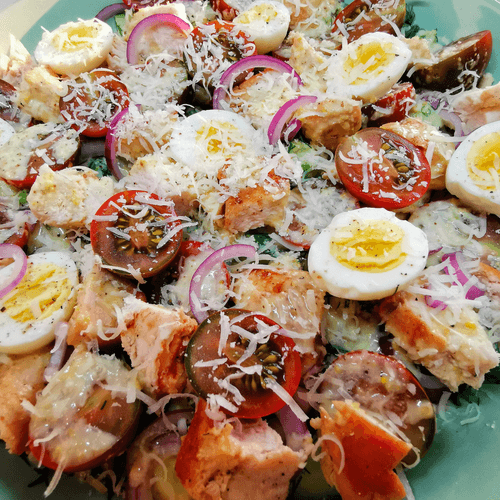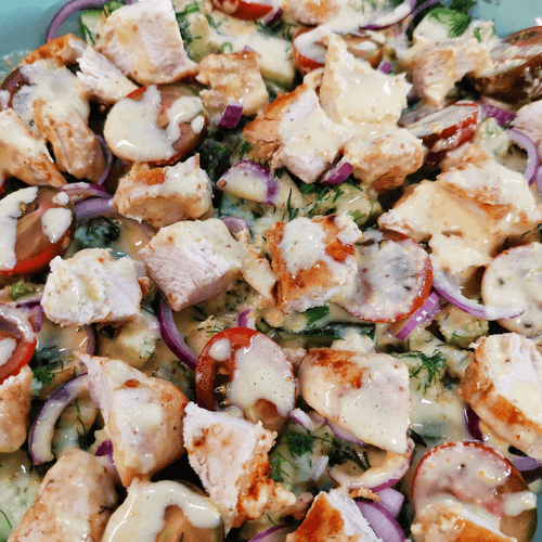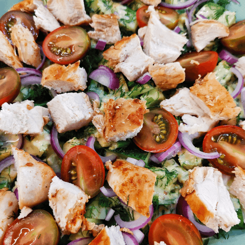 Send the chicken and tomatoes to the salad.