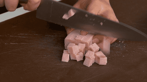 Mix the prepared vegetables, corn, and ham in a large bowl.