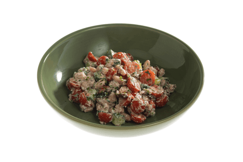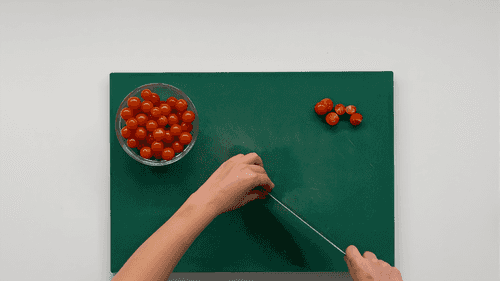 Cut the cherry tomatoes in half.
