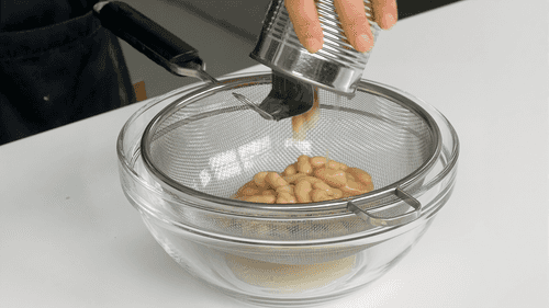 Rinse the canned beans and leave them in a strainer to drain excess liquid.