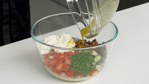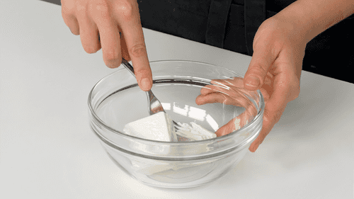Mash the feta with a fork to create lumps resembling cottage cheese.