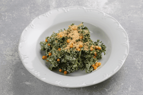 Kale salad with smoked chickpeas and cheese yeast