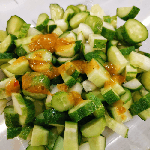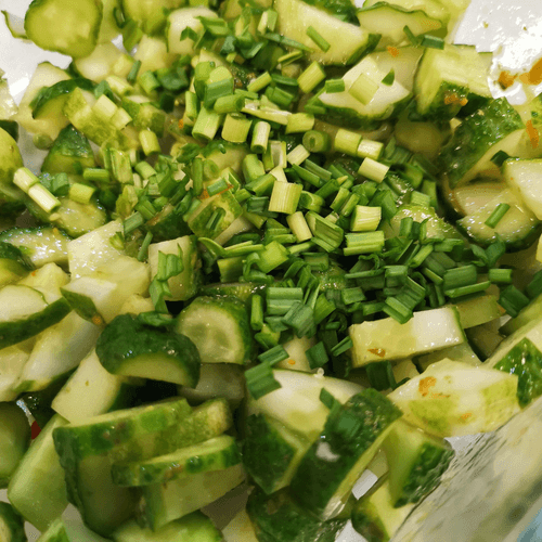 Add garlic to the cucumbers.