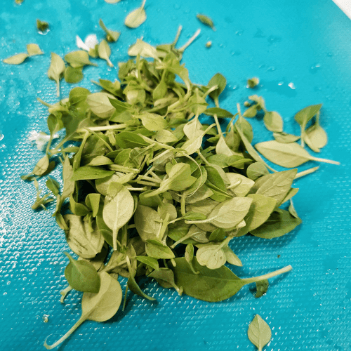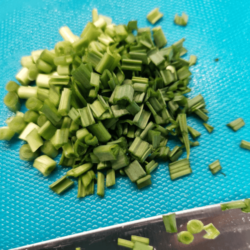 Then chop the garlic leaves.