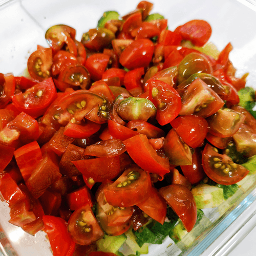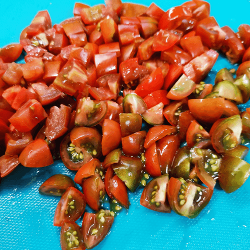 Cut the cherry tomatoes into several pieces.