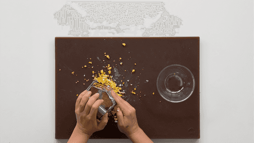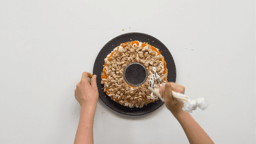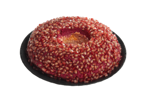 Before serving, add the last layer - pomegranate seeds - and remove the glass.