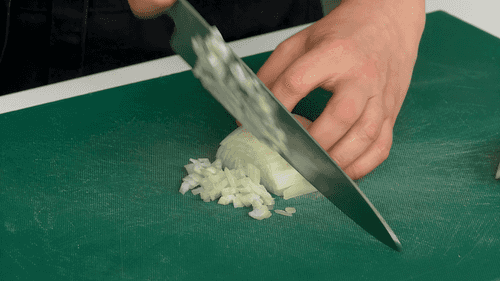 Chop the onion into small cubes.