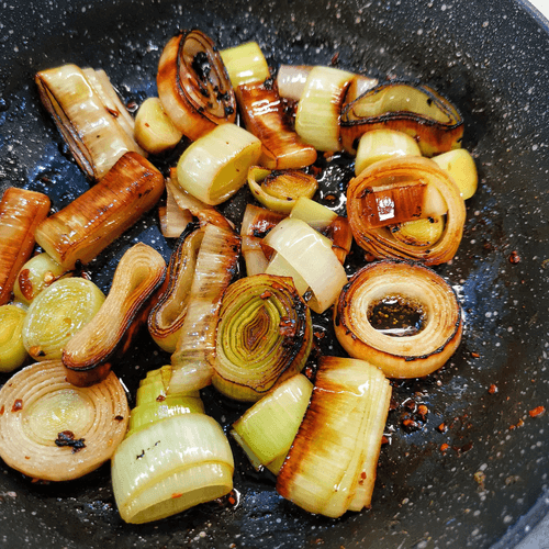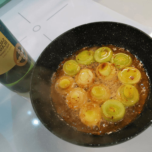 Cook for about 4 minutes, then drain the water and fry for another minute.