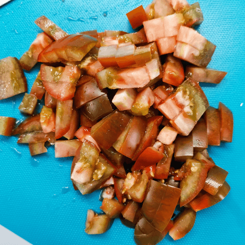 Cut the tomatoes into cubes.