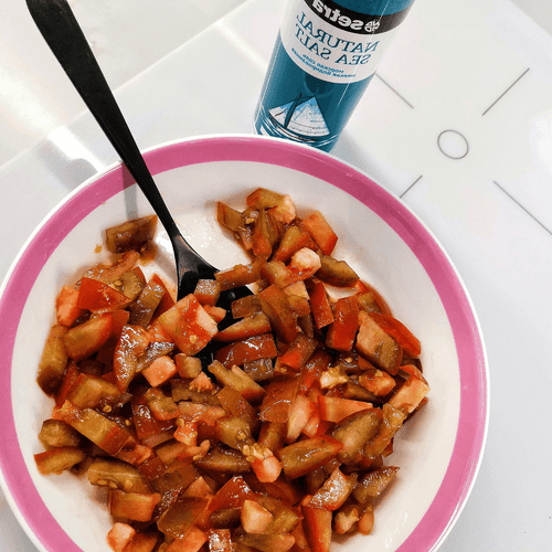 Place them in a dish, salt them, and mix.