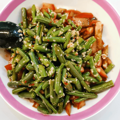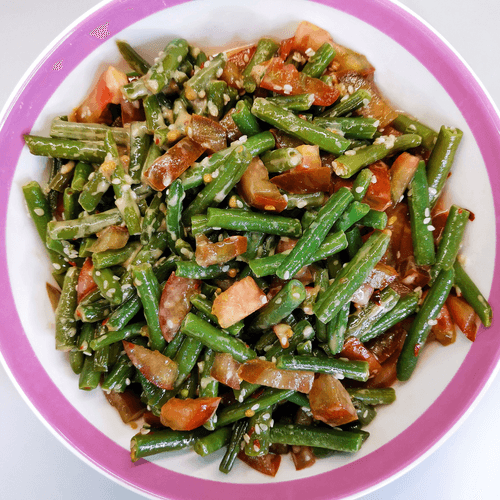 French bean salad is an elegant combination of freshness and spiciness that reflects the sophistication of French cuisine. Crispy green beans sautéed with sesame and fragrant oil acquire a tender texture and rich flavor, complemented by a light heat from chili peppers. Juicy cubes of fresh tomatoes add brightness, while an exquisite dressing made from Dijon mustard, soy sauce, and wine vinegar gives the dish a harmonious spiciness and slight acidity. This salad is perfect as a standalone light dish or as an accompaniment to meat and fish delicacies. Ideal for a refined dinner where the balance of flavors and aromas is appreciated, its simplicity in preparation makes it a favorite recipe among gourmets.