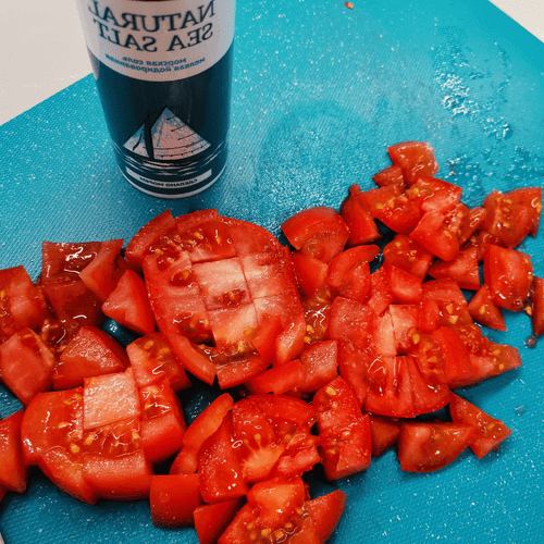 Cut the tomatoes into cubes and salt them.
