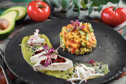 Not a salad, but an ode to legumes: lentils and red beans in the salad, white beans in the dressing and neat tofu sticks side by side on the plate. If you want to add a significant dose of fiber, iron and dietary vegetarian protein to your diet along with beans, then here is a way to do it beautifully. The source of additional pleasures here are finely chopped tomatoes, Dijon mustard, sweet and sour Chinese sauce and balsamic cream, which are dressed in moderate doses to the salad to prevent excessive starchiness and monotony of the bean company. Recipe from the Food Embassy restaurant.