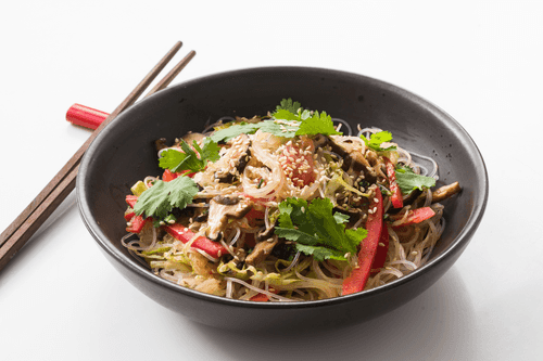 Vegetable funchoza is a bright and refreshing dish of Pan-Asian cuisine that combines a harmony of flavors and textures. The history of funchoza goes back to Asian traditions, where it is known as glass noodles capable of absorbing rich aromas. In this recipe, it pairs with crunchy vegetables, juicy grapefruit, and fragrant shiitake mushrooms. The dressing made from soy sauce, sesame oil, and spices adds richness and a slight spiciness to the dish. Vegetable funchoza not only delights the palate but also refreshes with its balanced sweet-sour note. It is perfect as a light dinner or a side dish to main courses. The combination of ease of preparation and exquisite taste makes this dish popular among lovers of Asian gastronomy.