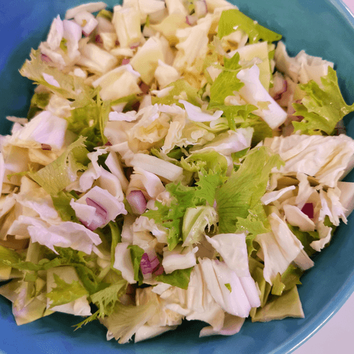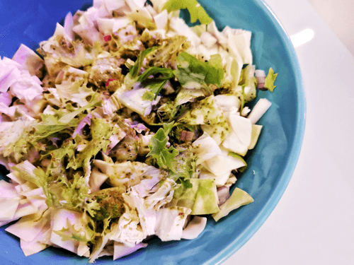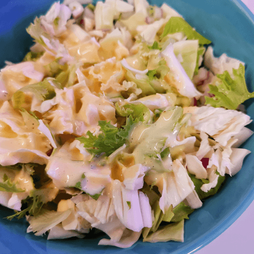 This vegetable salad with pesto and homemade mayonnaise is a harmony of freshness and rich flavors. European cuisine is known for its simple yet elegant dishes, and this salad is a bright example of that. The combination of crunchy iceberg and tender cabbage leaves, complemented by the spiciness of red onion, creates a base for the perfect balance of textures. Homemade mayonnaise adds creamy tenderness to the dish, while aromatic pesto adds spicy depth. This salad can be served as a light dinner or as a side dish to main courses; it pairs wonderfully with white wines and fresh bread. This recipe is an art of combining simple ingredients into a refined dish that delights in taste and appearance.