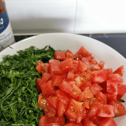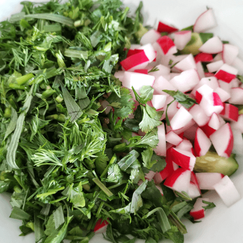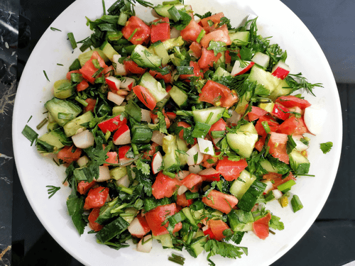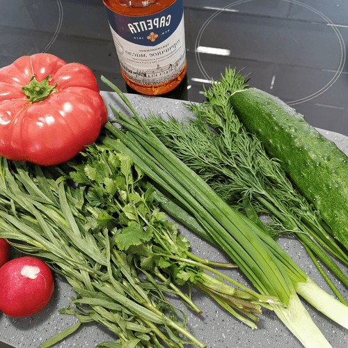 Vegetable salad with radish and tarragon is a bright and aromatic dish embodying the freshness of Caucasian cuisine. Its roots trace back to traditional summer tables where light and healthy salads take center stage. The combination of crunchy radish, juicy tomatoes, and refreshing cucumbers is complemented by the sharp taste of tarragon, giving the dish a unique character. The greens of parsley and dill enhance the natural freshness of the ingredients, while the mustard oil dressing adds spicy notes, making the salad truly memorable. This salad is perfect as a standalone dish on a hot day or as a light side to meat and fish dishes. It not only refreshes but also awakens the appetite, filling the meal with aromas of a summer garden and traditions of the Caucasus.