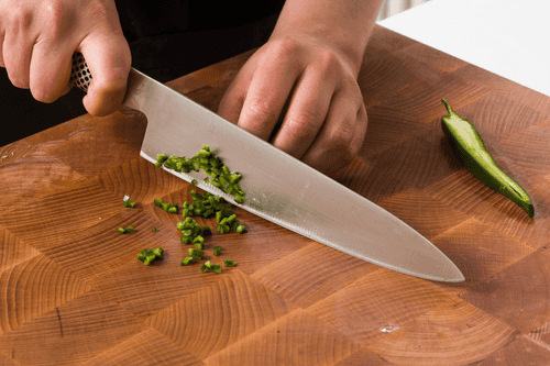 Remove seeds from the chili pepper and chop it finely.