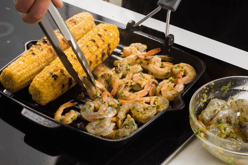 When the corn is almost ready, add the shrimp and fry them for 2-3 minutes on each side.