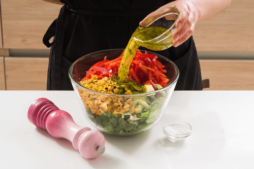 Cut the kernels off the corn and add them to the salad bowl.