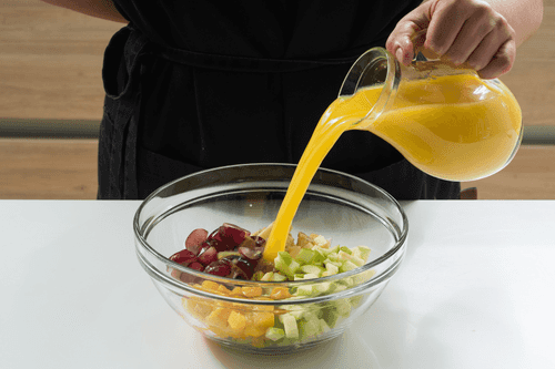 Let the salad sit in the fridge for the fruits to soak in the juice.