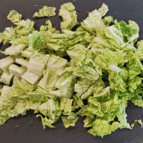 Chop the Beijing cabbage into small pieces. Try to use only the green part.