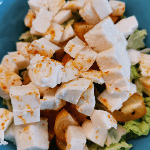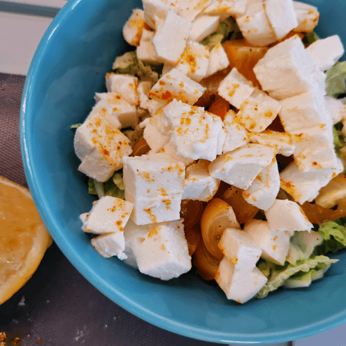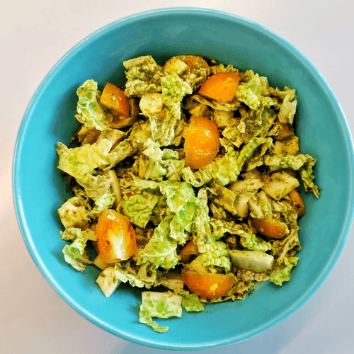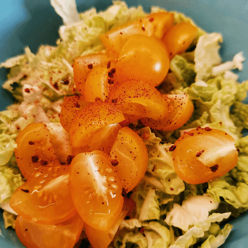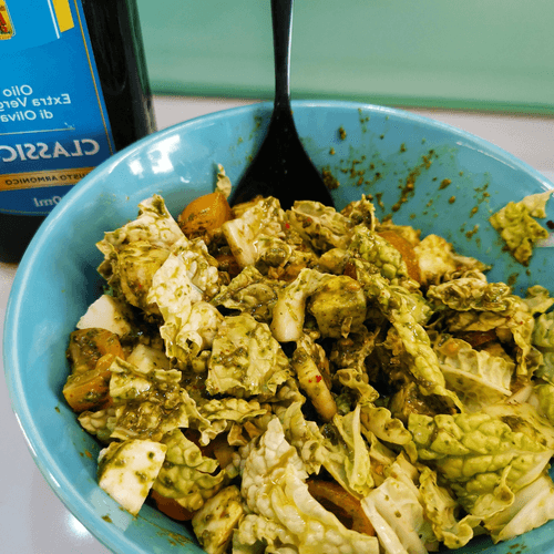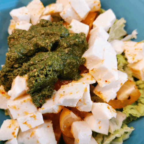 Mediterranean salad with pesto is a true celebration of flavors from sunny Italy. Its lightness and freshness combine with vibrant notes of saffron, sumac, and basil pesto, creating a harmonious blend of aromas. Crunchy napa cabbage provides a textural base, while sweet cherry tomatoes add juiciness. Creamy mozzarella makes the salad tender, and lemon juice adds a refreshing tang. The salad is perfect for summer dinners or light snacks paired with a glass of white wine. It pairs well with fish and seafood or can stand alone as a dish. Each ingredient plays its role in the symphony of taste, highlighting the Mediterranean elegance of this dish.