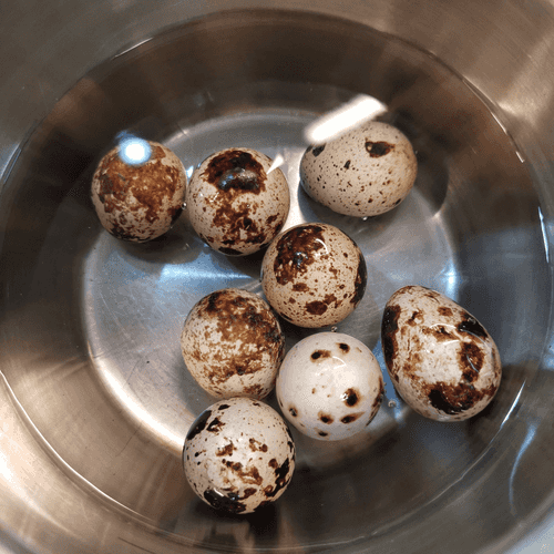 Boil quail eggs hard.