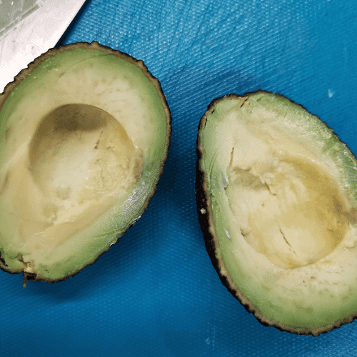 Cut the avocado in half and remove the pit.