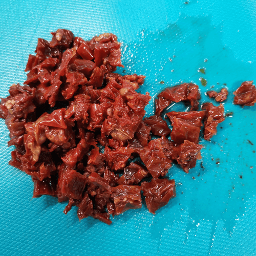 Chop the sun-dried tomatoes finely. Add them to the other ingredients.