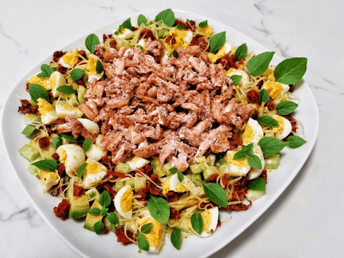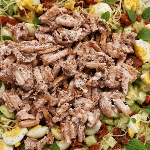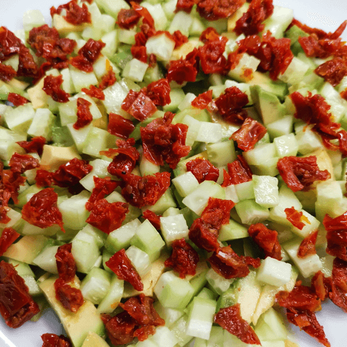 Finely chop the sun-dried tomatoes and add them to the salad.