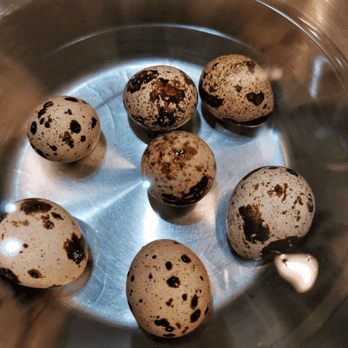 Boil quail eggs hard.