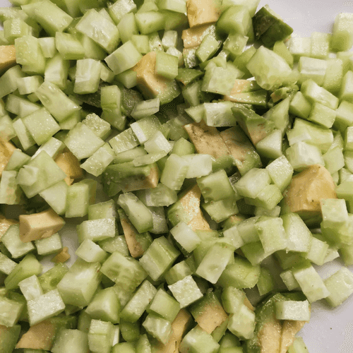 Dice the cucumbers and add them to the avocado.