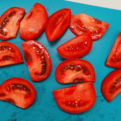 Slice the tomato into pieces about 8 mm thick.