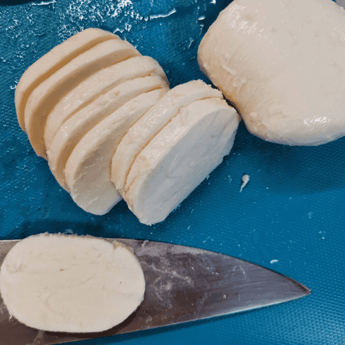 Slice the mozzarella into 8 mm thick slices.